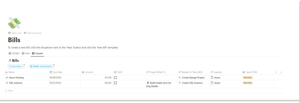 - Keep track of your bills that are coming due and link them to projects