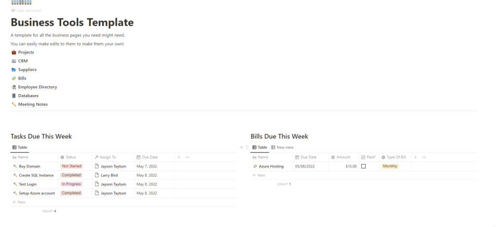 Business Tools Notion Templates