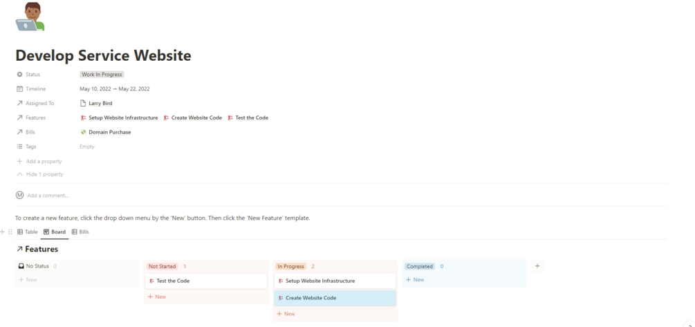 - Projects can be broken down into features and tasks, which can be assigned to employees